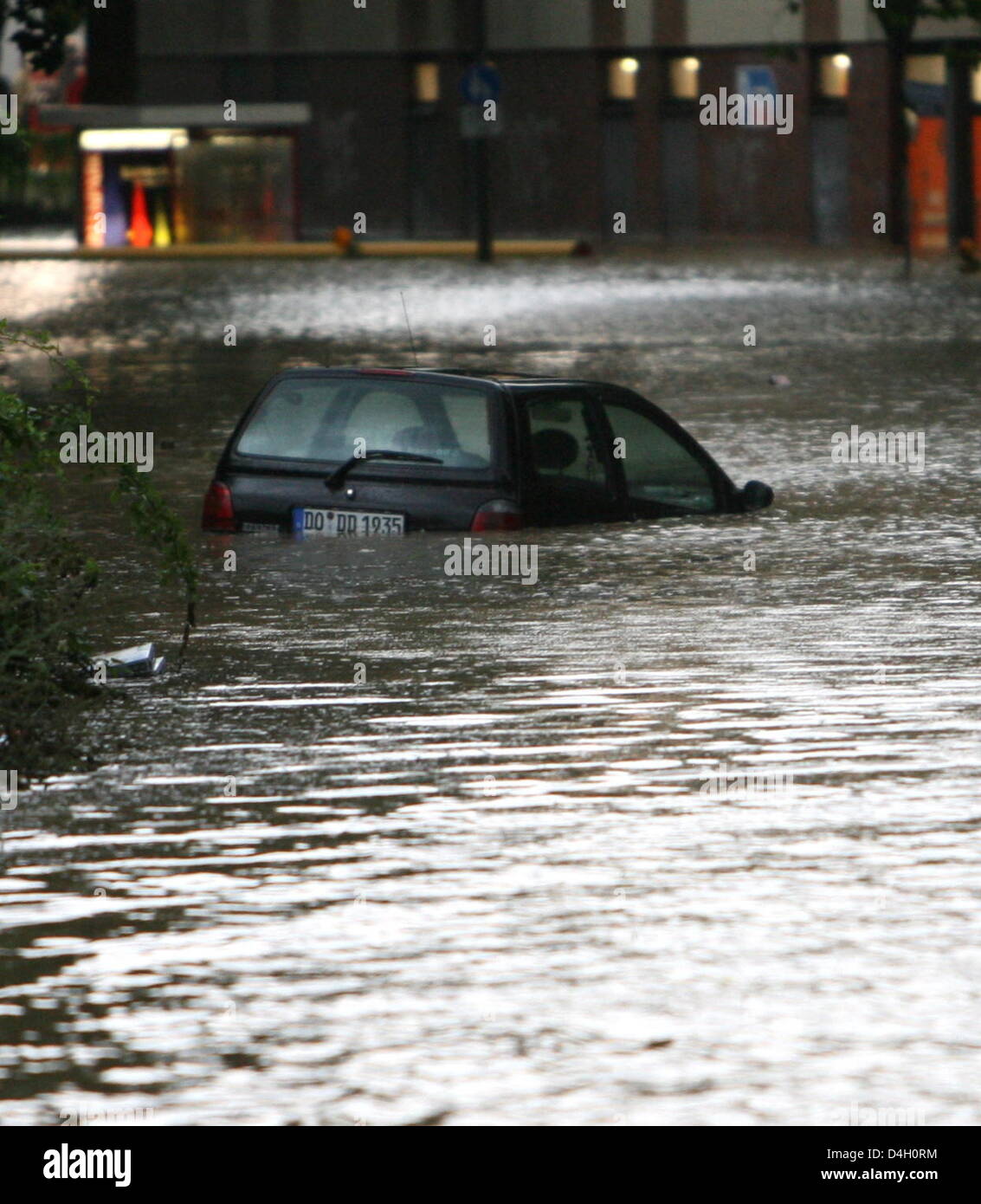 A Car Floats Down A Flooded Street In Dortmund Germany 26 July 2008 A Heavy Thunder Storm Caused Cellars And Streets To Flood In Parts Of North Rhine Westphalia Firemen As Well As